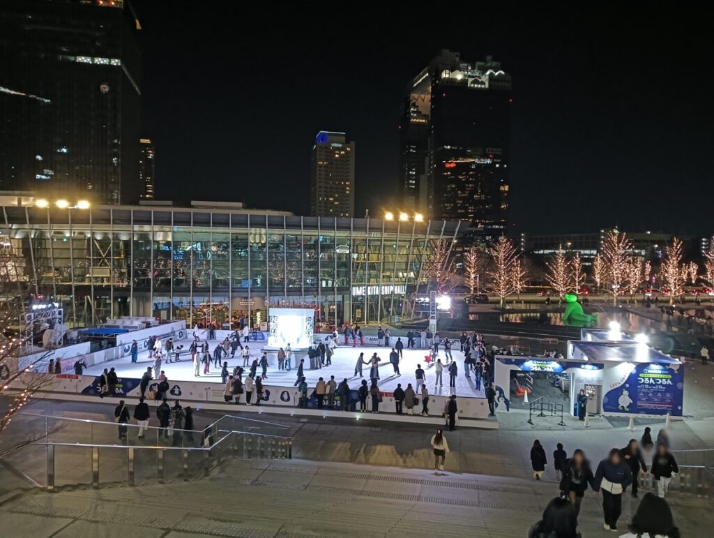 そしたら大阪駅をグランフォント側に降りた広場にここ数年あるスケートリンクが今年も。